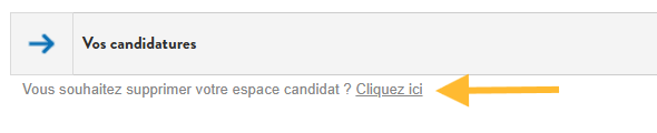 Vous pouvez supprimer l’ensemble des données (personnelles et liées à vos candidatures) en cliquant dans le lien en bas de page.